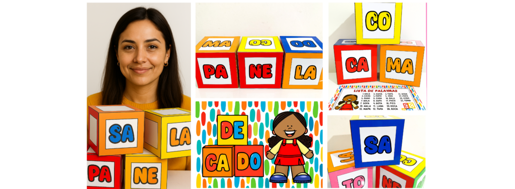 🧩 Kit Dado de Sílabas para trabajar la lectura y escritura de palabras con niños de Educación Infantil y los primeros grados de Primaria.
